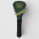 This Masters of the Green Golf Head Cover showcases a classic embroidered crest with crossed golf clubs, laurel wreath, and rich green and gold tones, evoking heritage, prestige, and timeless elegance on the course.
