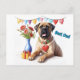 Hübscher Mastiff. English Mastiff feiert Geburtstag oder auch Muttertag mit einem schönen Geschenk.. Eine große Vase mit wunderschönen Blumen steht auf den Tisch. Der Hund springt mit Vorfreude fast auf den Tisch. Der Mastiff trägt ein großes Herz um den Hals. Traumhafte old english Mastiff Hündin . Der Mastiff ist ein Molosser und ein sehr guter Wachhund.. Er ist ein stolzer und sehr sanfter Riese.Diese Hunderasse ist eine englische Dogge , äußerst liebenswert und sehr treu. Ein toller Familienhund der immer ausgeglichen ist. Ein Geschenk für jeden Hundebesitzer.