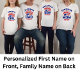 Celebrate the stars and stripes in style with our Matching Family 4th of July "All American" collection! Get ready to show off your patriotic spirit as you gather 'round the grill, enjoying mouthwatering burgers and sizzling hotdogs. Customise these shirts with your first name and date on the front, proudly displaying your unique bond. And for that extra touch of personalisation, add family names on the back, making each family member feel like a valued member of the group. Whether you're playing lawn games, watching fireworks, or simply soaking up the festive atmosphere, these Matching Family 4th of July "All American" shirts are the ultimate expression of unity and togetherness. With sizes available for all ages, from the littlest firecracker to the proudest grandparent, everyone can join in on the fun!
