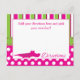 This adorable alligator direction card is a match to the invitation, thank you card, baby shower registration card, matching envelopes and other items in our store! A beautiful pink with lime green makes this thank you card stand out! Put them all together and create that WOW factor that will be the envy of all your guests! Completely customisable, add your directions, or remove text to add your handwritten directions once printed.
