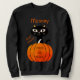 Matching sweatshirt with a cute black cat on the back of an orange pumpkin, looking at you with his huge eyes and with the message "Trick or Treat" and saying "Boo Meow". Very cute and creepily spooky for Halloween gift for Mum.