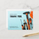 A minimal construction Matching Toolset-themed thank postcard featuring a simple flat photo design. It features a Matching Toolset towards the foreground with a simple thank you towards the side. On the inside is an additional area for your own specific thank you message to your construction and engineering team or clients. Or even a simple thank you message to your handyman for a job well done.