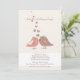 A whimsical pair of lovebirds, dressed as a bride and groom, are beaming with love for one another. A wonderful whimsical design for a wedding rehearsal dinner party.