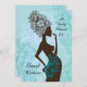 A contemporary design featuring a silhouette of a pregnant woman with flowers in her hair. The blue and teal background has abstract floral swirls.