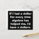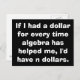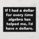 If I had a dollar for every time algebra has helped me, I'd have n dollars.