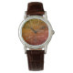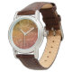I like the illustrative watch with the lady on it. It is a great reminder that I am blessed and it  has a very sturdy leather band. The colors are true and vibrant. Love the color of the Leather also. Very nice.