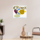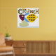 Math humour: a bird eats a fish made of numbers with illustrated detailed text above: CRUNCH". Math geek poster. Fun. Children's educational art.