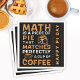 Saying says Math is a piece of pie that matches perfectly a cup of coffee and is decorated with illustrations.