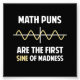 Math puns.... the first certain sign of madness! Or sine. Get it? Maddening, huh? Grab the great geeky design for yourself or your favourite mathematically inclined dork, math teacher, or student.