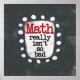 A fun mathematics themed typographic piece with the words "Math Really Isn't So Bad". It's grey and white with black and red text and white whimsical dots surrounding the phrase.