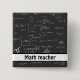 Black button with math equations in white for math lovers. The text reads "Math teacher" but it can be personalised. Designed by Patricia Alvarez.