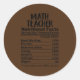 Math Teacher Nutrition Facts Funny Classic Round Sticker