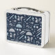 This is a standard metal lunchbox that appears to work just fine. We designed this box ourselves with an uploaded photo and custom text on the front and back. It looks absolutely beautiful except the front of the lunchbox is not centered like it shows in the photo. The print borders don't align with the inset flat part of the box where the preview photo online showed it perfectly centered in there. The back looks nice and centered though.
