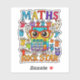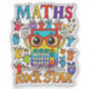 Fun and colourful Maths Rock Star sticker with a cute calculator character.