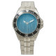 Has heft and feel of expensive stainless steel quartz watches. Good band with safety catch. I removed links, which is easy because engraved arrows show direction to push the linking pins. As always by this seller, the image (a railroad logo) is a perfect reproduction of my emailed image, and is precisely spaced and aligned.