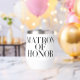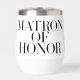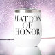 A gift for a bride to give her best friend, her matron of honour! It has the word "MATRON OF HONOR” in a black modern font. Personalise the back with a name. It makes a great proposal gift, shower favour, bachelorette party favour, or bridal party gift! We have the matching black bride, bridesmaid, maid of honour, mother of the bride, mother of the groom, and friend of bride glasses in my shop, PageCreativeDesigns.