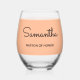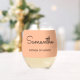Matron of Honour Monogram Wedding Elegant Peach Stemless Wine Glass