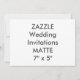 Custom Personalised MATTE Wedding Invitations - 7" x 5". The most popular paper choice, Matte’s eggshell texture is soft to the touch with a smooth finish that provides the perfect backdrop for your chosen designs. 120lb, 17 point thick card. MADE IN THE USA. Big bulk buy multi purchase discount savings on invitation cards, up to 50% off your purchases for multiple item orders. Zazzle Wedding Invitations - Create, make, design your own custom wedding invites from this fully customisable, personalised Zazzle invitation card design template blank. High quality, full-colour, full-bleed printing on both sides with Standard or HIGH-DEFINITION print options. Size Options: 5" x 7", 4.25" x 5.5", 3.5" x 5", 4" x 9.25", 5.25" x 5.25", 4.5" x 6.25", 5.5" x 7.5", 6.5" x 8.75”. Orientation Options: Vertical (portrait) or horizontal (landscape). Finish Options: Semi-gloss, Matte, Ultra-thick, Laid, Linen, Columned, Felt White, Felt Ecru, Kraft, Pearl Shimmer, Champagne Shimmer & Metallic Silver. Card Shape & Style Options: Standard or Rounded Corners (all sizes); Bracket, Scalloped, Ticket or Tag (5” x 7” only); Circular (5.25” only). Standard white envelopes included, with upgrade options. Perfect for wedding invites, bachelorette, bridal shower, rehearsal dinner, save the date etc, and for any RSVP party invitations, such as anniversary, birthday, sweet sixteen and Quincenera; or for corporate event & exhibition invites - for photo, image, text, bride & groom, or your own unique personalised design creation.
