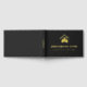Matte black and gold guestbook for your small business vacation rental with the name in gold foil beneath mountains and pine trees. Elegant rental or private cabin guestbook with the outline of mountains, pine trees, and your business name against a matte black background. Black and gold foil guestbook for your rental home, rental cabin or mountain bed and breakfast with custom gold foil text.