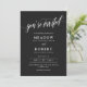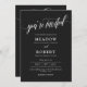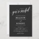 Informal two in one wedding invitation with you're invited written in beautiful calligraphy across the matte black wedding invite. Add your wedding details to the back. Informal matte black and white wedding invitation with a combination of swirly calligraphy and elegant fonts.