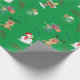 Matte Christmas Green Background Reindeer, Snowman Wrapping Paper
