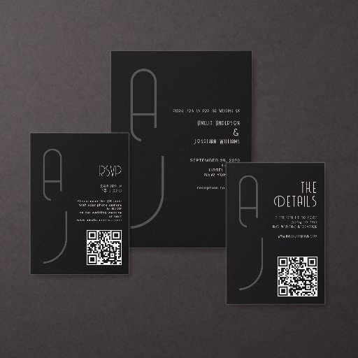Matte Monogram Minimal Qr Code Wedding Black Enclosure Card