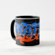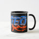 A very beautiful, stylish, personalized mug / coffee mug / tea cup in graffiti urban street art blue orange design for Matteo.