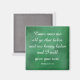 This christian magnet has the bible verse Matthew 11:28 to help comfort and give encouragement to those seeking strength in an elegant font against a green background.