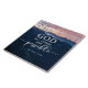 Inspirational quote scripture ceramic tile depicts a nature photograph with a beautiful pink and blue mountain sunset. It features Bible Verse Matthew 19:26, "With God all things are possible." _