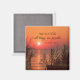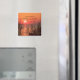Inspirational scripture magnet depicts a beautiful red and orange sunrise over the water. It features Bible Verse Matthew 19:26, "With God all things are possible."-