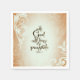 Inspirational Christian scripture napkins depicts a light blue and brown vintage abstract background. It features Bible Verse Matthew 19:26, "With God all things are possible."_