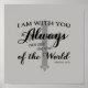 Grey Christian bible verse poster art print, Matthew 28:20: I am with you always, even unto the end of the world.