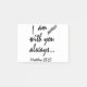 Teach these new disciples to obey all the commands I have given you. And be sure of this: I am with you always, even to the end of the age.”