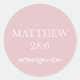 Designed with a soft dusty pink background and warm cream typography, this Scripture sticker highlights the Resurrection message in a calm, reverent, and timeless style.