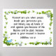 Christian inspirational quote scripture poster depicts a green clover frame with a bird and simple blue flowers. It features a portion of the Beatitudes, Jesus' famous teaching from the Sermon on the Mount, Bible Verse Matthew 5:11-12, "Blessed are you when people insult you, persecute you, and falsely say all kinds of evil against you because of Me. Rejoice and be glad, because great is your reward in heaven."_