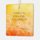 Christian inspirational quote personalised Christmas ornament depicts an encouraging scripture on an abstract watercolor design with simple white sunflowers and a yellow and orange background. It features a portion of the Beatitudes that Jesus spoke in the Sermon on the Mount and recorded in Bible Verse Matthew 5:8, "Blessed are the PURE in HEART, for they will see God." Customise the back with a name or details of your choice.