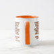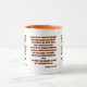 This two-tone mug features a children one print font with black letters orange outline displaying the "Matthew 6:19-21" KJV bible scripture verse over a white background. This verse is referencing the Book Of Matthew 6th chapter showing verses 19 through 21 in this bible scripture quote theme from the King James bible The rim & handle are glazed in matching colours available in 11-ounce or 15-ounce sizes microwave and dishwasher safe ceramic construction.