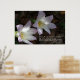 Scripture poster bears these verses from the King James text: “Consider the lilies of the field, how they grow; they toil not, neither do they spin: ”And yet I say unto you, That even Solomon in all his glory was not arrayed like one of these.”  Matthew 6:28 & 29 Photo shows rain lilies in a Florida garden.