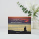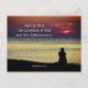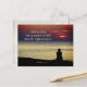 Inspirational quote scripture custom postcard depicts a nature photograph including a person sitting on the shore watching a beautiful red sky over blue ocean waters. It features Bible Verse Matthew 6:33, "Seek ye first the kingdom of God."