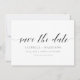 This save the date features an elegant script font and modern minimalist design. Easily edit all colours and most wording. Add your own photo to the backside of the save the date and include your wedding website for easy guest reference. This invitation makes the perfect announcement to your elegant romantic wedding celebration.
