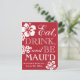 This red modern design says "Eat, Drink and Be Maui'd". Personalise this save the date postcard with the details of your upcoming wedding. I have this design available in a variety of colours, if you don't see the one you're looking for just message me. Let me know if you have questions.