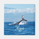 Whale diving with tail sticking out of the ocean water. The beautiful island of Maui in the background.