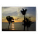 Soft swaying palm trees in front of pastel clouds, while the setting sun is reflecting in the ocean at Kahana, Maui / Hawaii