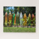 Surfboard fencing along the road. The story is there was a hurricane coming and the homeowner built a surfboard fence along the side where the winds would come from. For years after, locals would donate their used boards to this homeowner and the fence grew. A colorful Maui graphic image to make a challenging jigsaw puzzle.