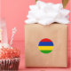 Illustration of the red, blue, yellow and green flag of Mauritius. Image available on various gifts and products. Round stickers.