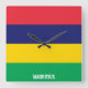 Mauritius National Flag Patriotic Square Wall Clock with the country flag in the national colors printed all over the clock. Country name is subtly integrated in the design on the bottom. Text is fully customizable using "Customize it!" feature. This charming design is the stunning gift and the great show piece on the wall . © CountriesOfTheWorld