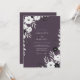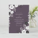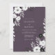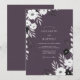 This design features a striking contrast between a rich mauve background and delicate white botanical elements. Elegant white anemones and dainty foliage branches create a sophisticated, moody aesthetic perfect for a late-season event. The deep purple palette is complemented by soft grey leaves and charcoal accents for a modern yet timeless look.