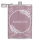 Enjoy your favourite alcoholic beverages anytime with a Mauve Elegant Damask Vinyl Wrapped Flask. Flask design features an elegant damask background and space to add your name adorned with delicate foliage. Additional gift items available with this design as well.