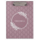 Jot down notes and reminders on a secure surface with a Mauve Elegant Damask Personalised Clipboard. Clipboard design features an elegant damask background and space to add your name adorned with delicate foliage. Additional gift items available with this design as well as a variety of colours.