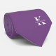 An elegant two-sided necktie featuring a bold white monogram across a Mauve purple background. On top of this monogram sits your first or last name spelled out in all capitals.